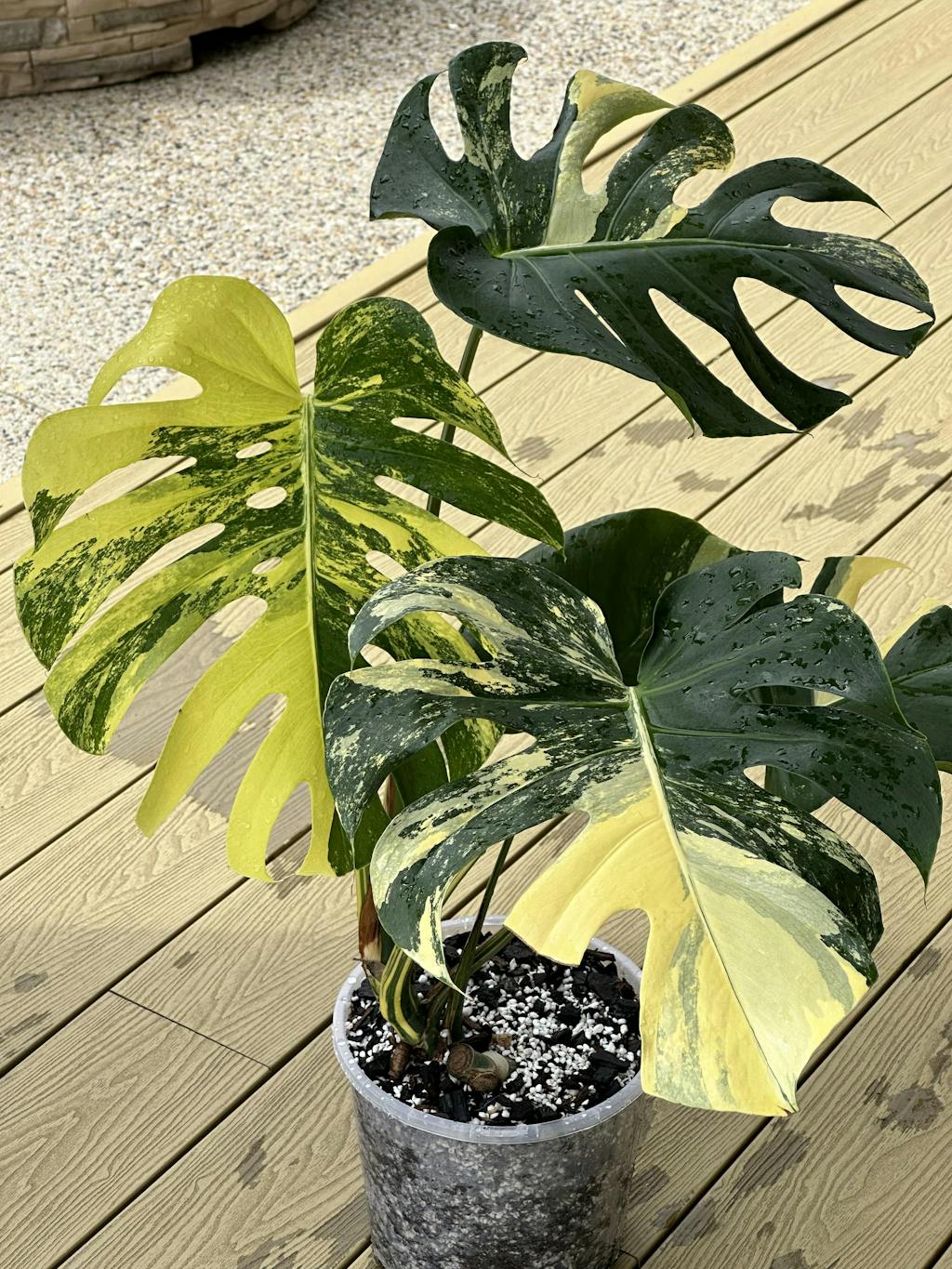Monstera deliciosa Variegata is a stunning variety of the popular Monstera deliciosa, also commonly known as a Yellow Thai. Has striking yellow variegation that contrasts beautifully with its lush, green leaves. These large, fenestrated leaves, which develop characteristic splits as the plant matures, make it a sought-after houseplant.